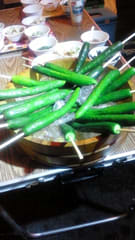 ソーメンの薬味は、オクラ納豆、キムチ、みょうが、しょうが、のり、