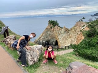 展望台では、向かって右側が先程まで潜っていた黄金崎ビーチ、