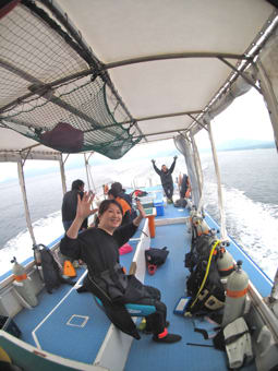 今回は、ベテランメンバーが勢揃いの潜り隊ツアーでした。伊豆ではめずらしく出港してから一日中ボートの上でのんびり過ごすデイトリップツアーです!休憩中も船上でのんびり過ごすことができるので、のんびり潜り隊にはもってこい!