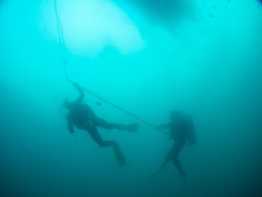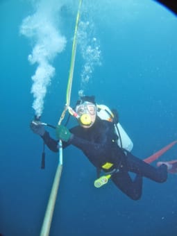 浮上の際は、潜行ロープを使って安全停止を行ないますが、安全停止用のバーが設置されるので安心安全停止が出来ちゃいます!