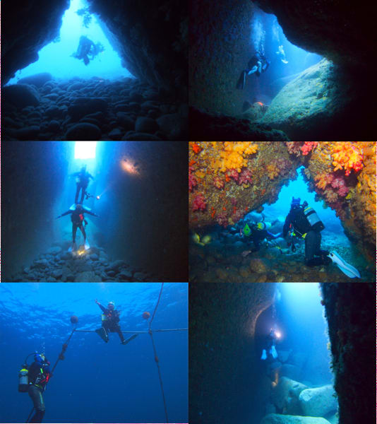 初めての方にはゆっくり洞窟巡りがオススメですが、水中のプランを3人であーだこーだと相談している間に何故か、組体操をしようということで、組体操撮影大会となりました(笑)