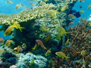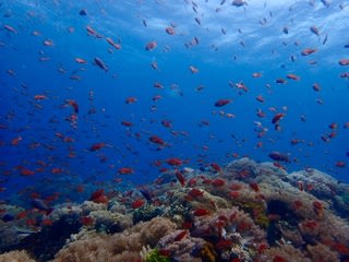 色とりどりのハナダイやスズメダイでとっても華やかです。