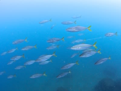 水中はエントリーしてすぐの講習エリアにイナダの集団がイワシ玉にひたすら猛アタックで、超!超!迫力でしたーーーー!!