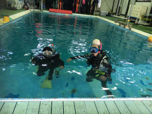 今日はオープンウォーターコースの2回目のプール実習!