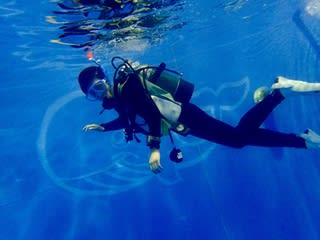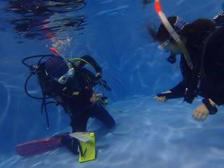昨日に引き続き、今日も朝からオープンウォーターコースの学科とプール講習でした。