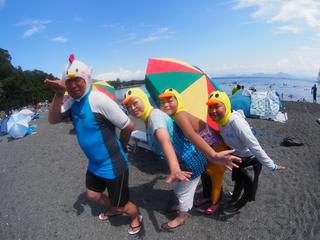 ファンチームといっしょに終了の記念撮影です。姉妹で水中肩車も大成功♪