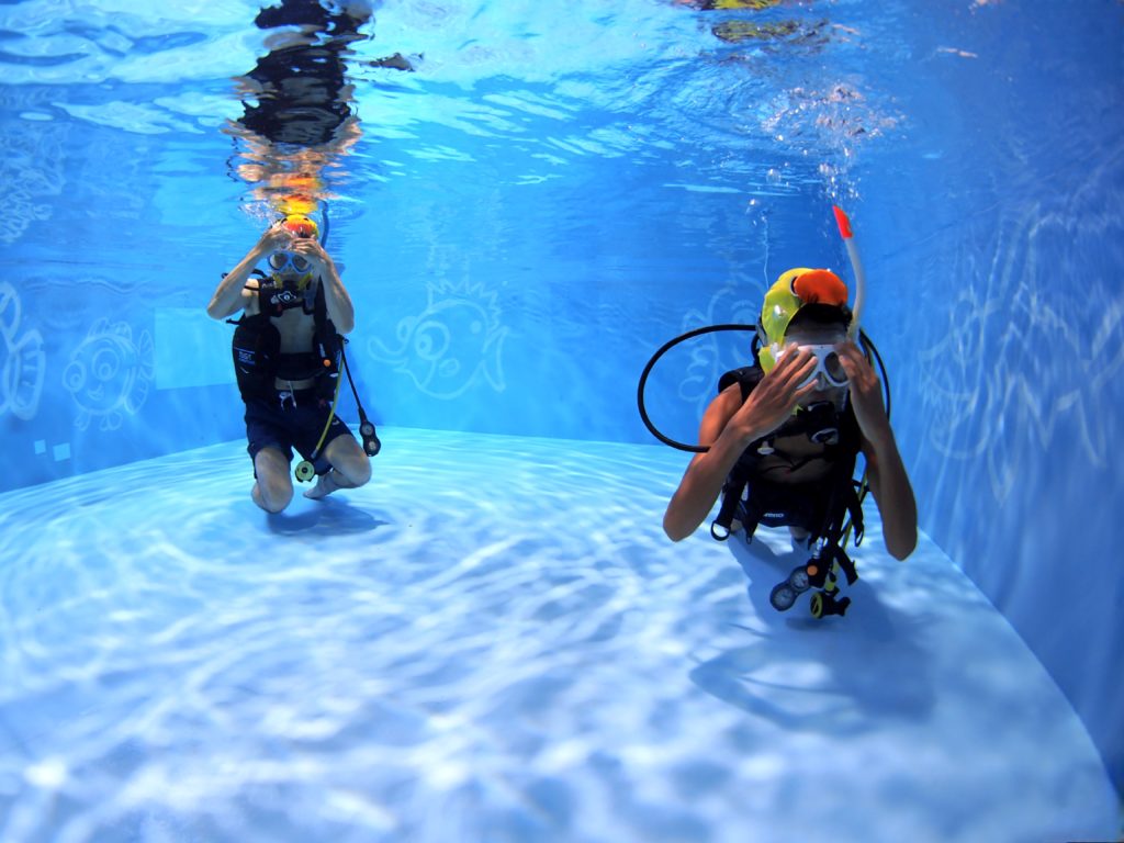 ダイビングプール🏊♂️水の入れ替えしました! プールOLYMPUS DIGITAL CAMERA 2025.09.06 先日ダイビングプールの水の入れ替えを致しました!透明度最高のプールで潜ってみませんか😊✌️ 1番風呂のお二人様です!!めっちゃ見渡せるので水深キープの練習もやりやすいでーす✨