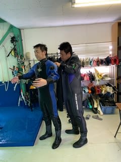 ドライモニター♫ weblog 2020.08.02 今日は、先週ライセンスを取られたお客様の、プールでのドライモニター会でした。 暑さに負けそうでしたが、頭から水を被って暑さを凌ぎ、 初めてのドライスーツを頑張りました(•̀ᴗ•́)و ̑̑ 濡れないって、やっぱりスゴイ!!