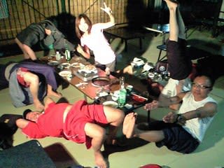 ブリッジ祭りヽ(゜▽、゜)ノ weblog 2008.08.15 二次会のメニューは焼ナス、豚キム、トンしょうが焼き、アジのみりん干し、焼きバナナ、焼きトンビ、などなどでお腹いっぱい!! おきまりのブリッジ&いまから駅伝やりま~す(ノ^^)八(^^ )ノ