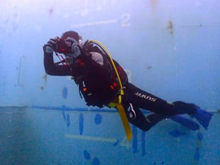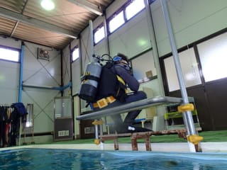 台があるから、ボートダイビングに向けて、バックロールエントリーの練習も出来ちゃいます