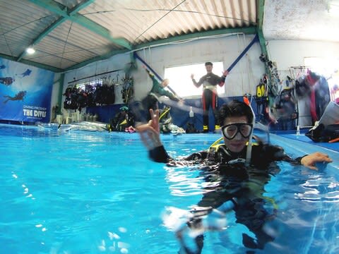 本日はライセンス取得コースでプールダイビングです。