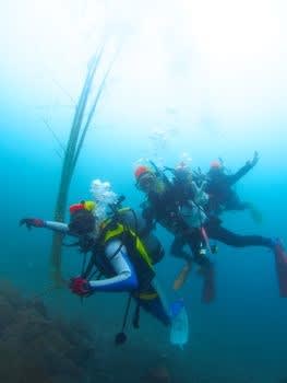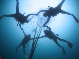 今回の講習の集大成はこれ!!!!笹を囲んで七夕ダイビング。