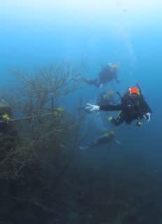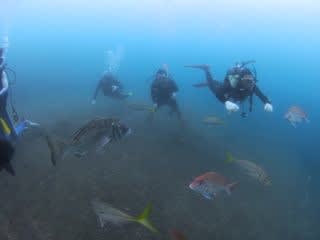 湾内の正面には中性浮力の練習にはもってこいなスゴ〜〜く大きな魚礁があります♪視界不良の時はアヒルフードが安心♪目立ってとってもわかりやすいです