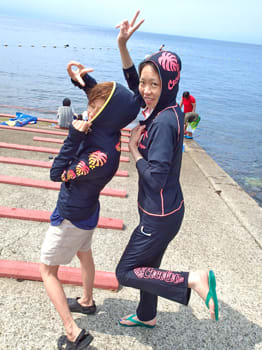 もちろんビーチではUV効果抜群のラッシュパーカーは必須ですよ♪