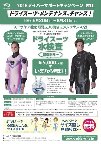 今年もワールドダイブ社のドライスーツの水検査無料キャンペーンがスタートしました
