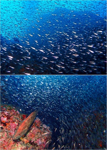 OWコース&ファンの2チームワークでボートは20mオーバーからの群れ祭り!串本に来たからにはアザハタの根は外せません