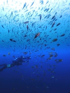 初日は西伊豆の田子に行ってきました♪やはり期待どおりの群れ群れ~~(^^)過ぎ&豪快な景観で大興奮なダイビングを楽しませて頂きました!!!