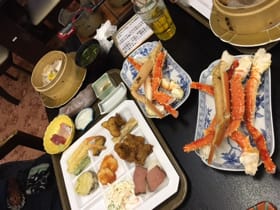 伊豆ではありませんが、弁天に移動して急遽『日帰り温泉&カニ食べ放題付きバイキング』