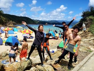 九十九浜海水浴場は大賑わい!ダイビングゾーンにもスノーケリングの方がいらっしゃいました。
