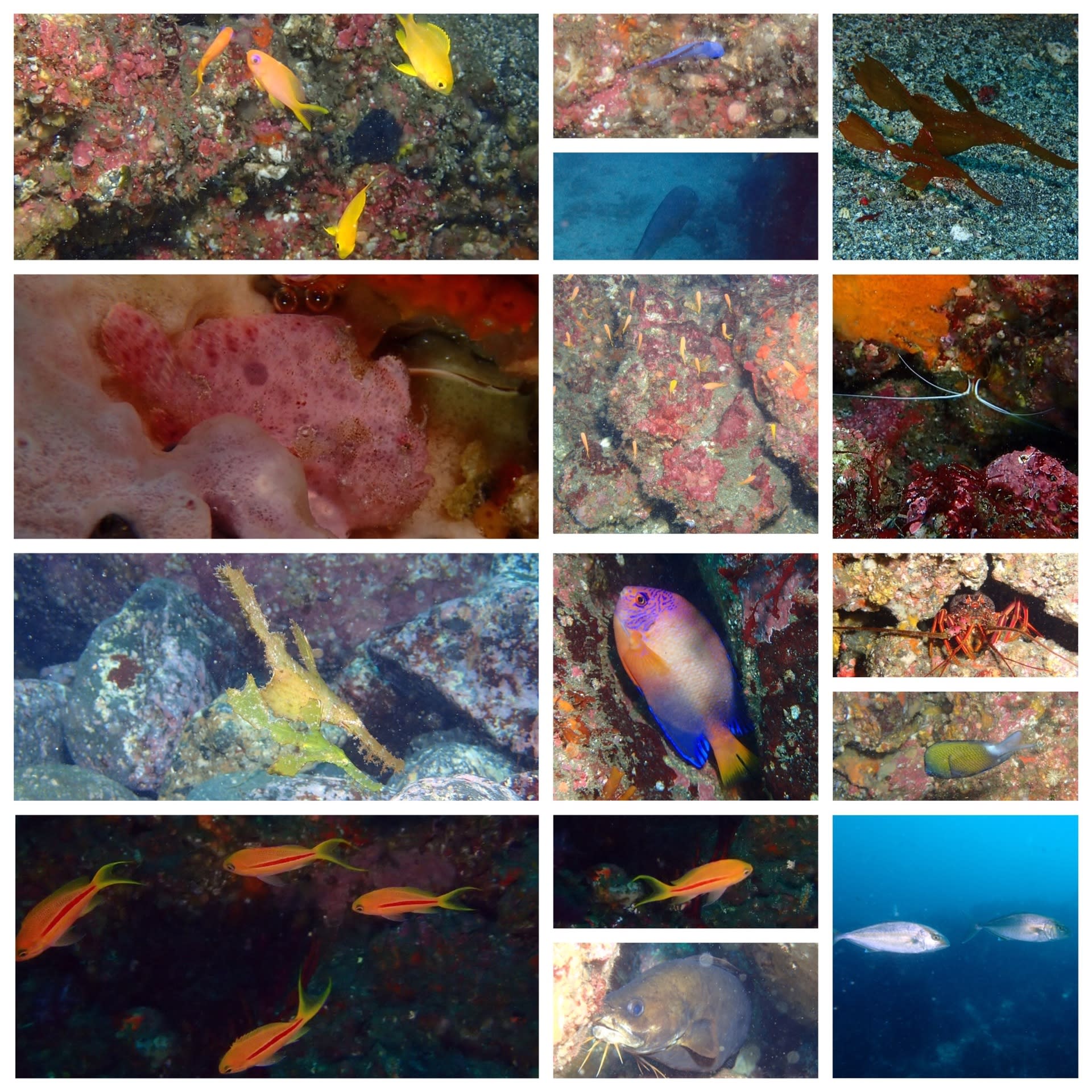 アカシマシラヒゲエビ、ベキカエルアンコウ、イタチウオ、アオリイカ、カンパチ、レンテンヤッコ、