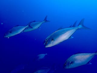 カンパチの群れがずっとそばを離れません!!
