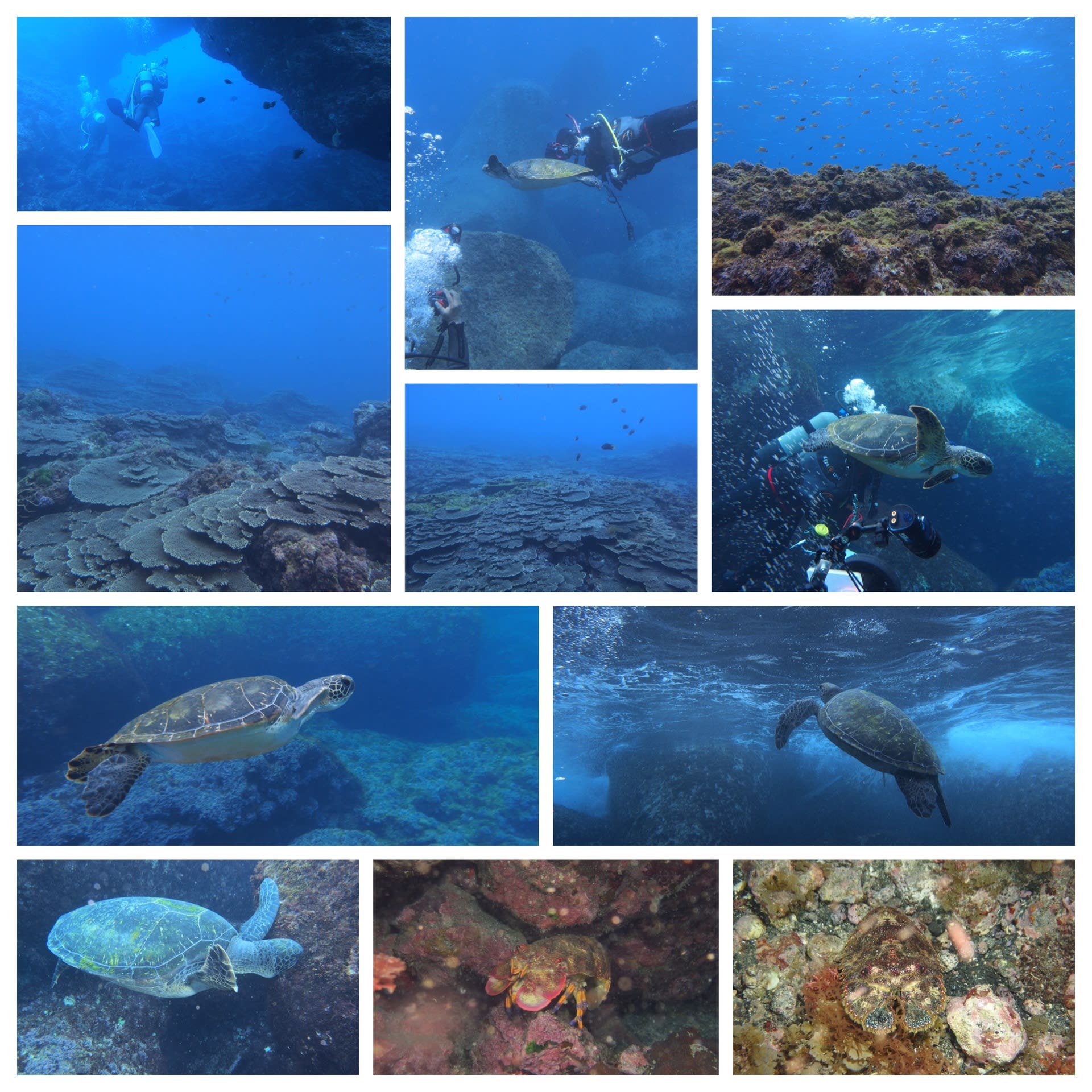 何処を潜ってもアオウミガメが歓迎してくれます。