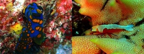 戻る道中には、サガミリュウグウウミウシや、巨大バイカナマコにウミウシカクレエビも。