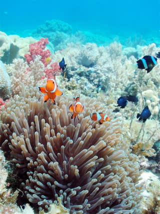 セブ島ツアーにて3匹のカクレクマノミがタイミングよく