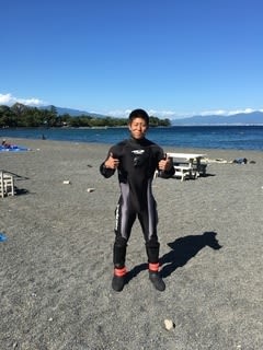 初めてのドライスーツを着用し、嬉しそう♫