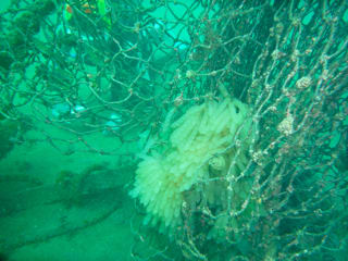 魚礁では、クロシイシモチやネンブツダイがたくさん群れていました。