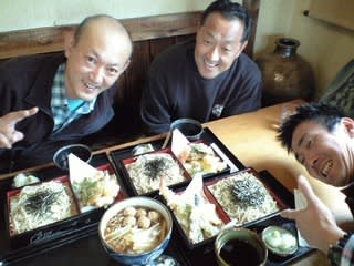 宇久須にて♪ weblog 2009.10.20 今日はみなさん非常にスピーディーで黄金崎を13:00過ぎには出発できちゃったので、帰りは宇久須の『やぶ誠』にて、人気のアオリイカの天ざる、つくね南蛮、イロイロ天ざる、などなど ギリ昼の営業時間に間に合いました