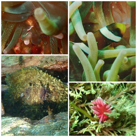 尊之島はビギナーでも潜りやすく、岩にはマダコが隠れていたり点在するイソギンチャクやサンゴにはクマノミやイソギンチャクカクレエビエビ、フタスジリュウキュウスズメダイも健在で生物も楽しんできました