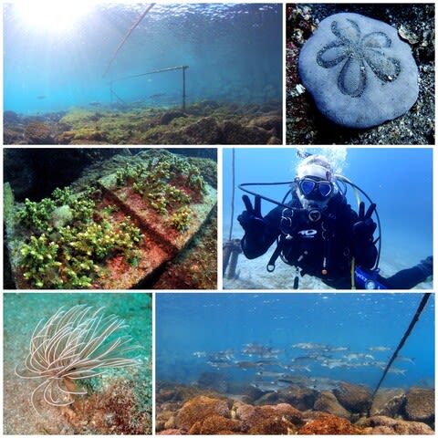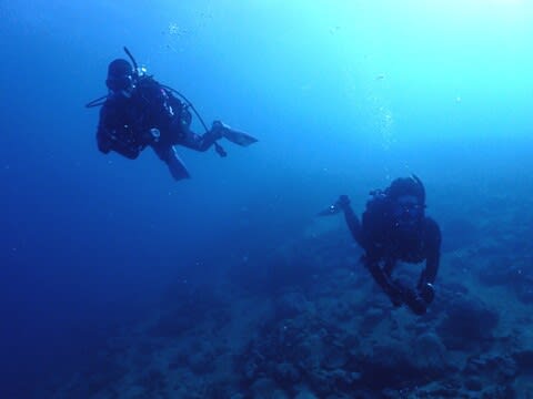 西風で水面はざわついていましたが、潜ってしまえば青くてキレイな海が広がっていました