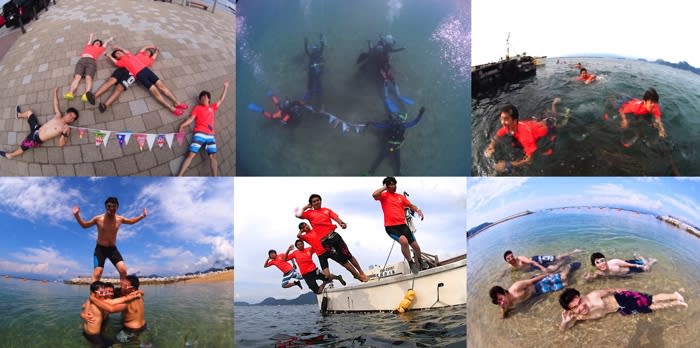 チームワーク抜群の水中人文字や水中トーテムポール、水中ガチンコ競争では大爆笑!!