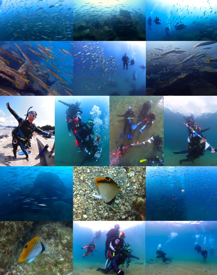 まだ日中はかなり暑いので、ドライスーツの方はほとんど見かけませんでした。砂地側では体験ダイビングをされている方が多かったです。