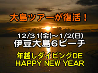 年末カウントダウンツアーは伊豆大島!! weblog 2010.12.18 皆様、お待たせ致しました リクエストが非常に多い、伊豆大島ツアーを年末年始に開催いたしま~す 過去に何度もニタリが見られている魅力的なポイントです 最近は、迫力満点のワラサやイサキの群れ、 マクロ系ではクマドリカエルアンコウやフリソデエビ、クダゴンベが見られています まずはお気軽にお問い合わせ下さい!! ご案内はこちら↓