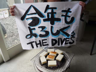 浜松からたくさん持っていったお餅を、七輪で焼いて、磯辺焼きにして食べました