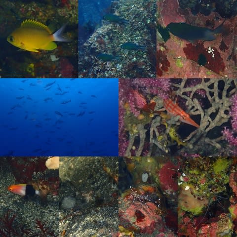 浅場ではタコベラやスジベラ・キホシスズメダイの小群れや、