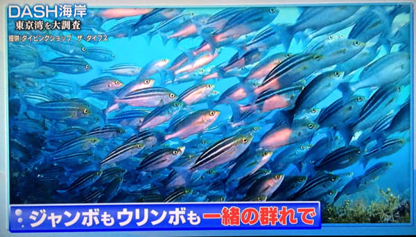 イサキの群れの中にジャンボ(40cmオーバーのイサキ)も入り交じっている映像ですが、ジャンボと呼ばれる成魚は一匹5000円!!もするそうです!!今後は別の視点でイサキの群れを見ちゃいそうですね♪