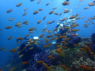 フト根ははキンギョハナダイやイサキの群れがいっぱいで、前が見えませ〜ん(╹◡╹)