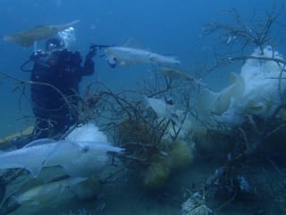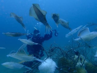 アオリイカ30匹くらいが、押し合いへし合いで、所狭しと産卵をしていました。
