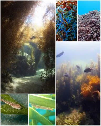 ホンダワラ類は、浮き袋を持ち、高くそびえ、幼魚達が寄り添っています。