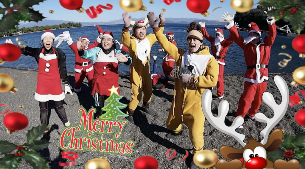 水中サンタとトナカイ大集合♪ weblog 2023.12.22 昨日は毎年恒例のダイビングゼミ生のみなさんのクリスマスツアーでした。大瀬崎に水中サンタと水中トナカイが集合です かなりの強風で陸上では吹っ飛びそうになりながらも大瀬崎の海を楽しんできました只今透視度抜群!水中は最高です!