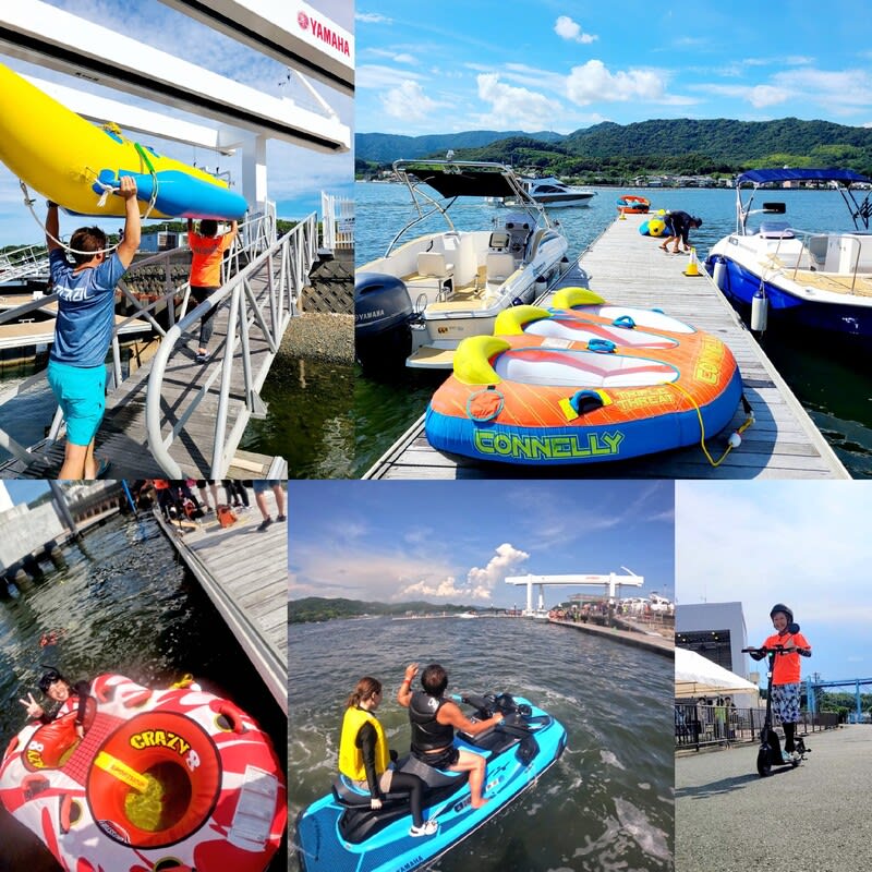 海の職業や海の課題について学んだあとは、マリンスポーツ(クルージング、マリンジェット、ウエイクボード、マーブル、バナナボート、SUP、水中ドローンなど)実習です!