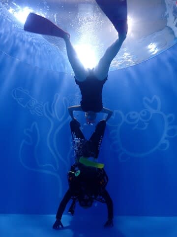スクーバ&スキンのコラボレーション写真では難しいW逆立ちが成功!