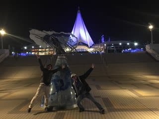 夜景がキレイでテンションも上がっています!