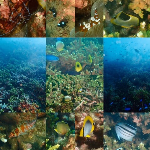 ヒメエダサンゴの群生に季節来遊魚のチョウチョウウオの幼魚達を見に行きました。