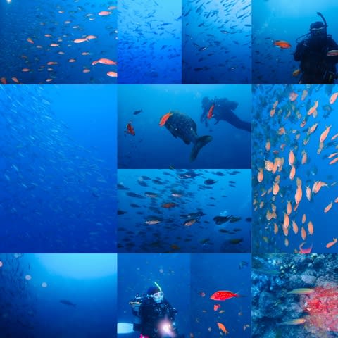 根頭はキンギョハナダイやマツバスズメダイ・イサキ・タカベなどがぐっちゃぐちゃに群れていて、