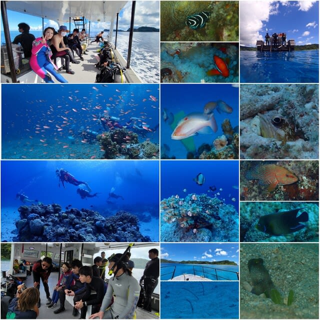 アカネハナゴイ、ケラマハナダイ、テバスズメダイ、キンギョハナダイなどサンゴの周りは魚が群れ群れ!!