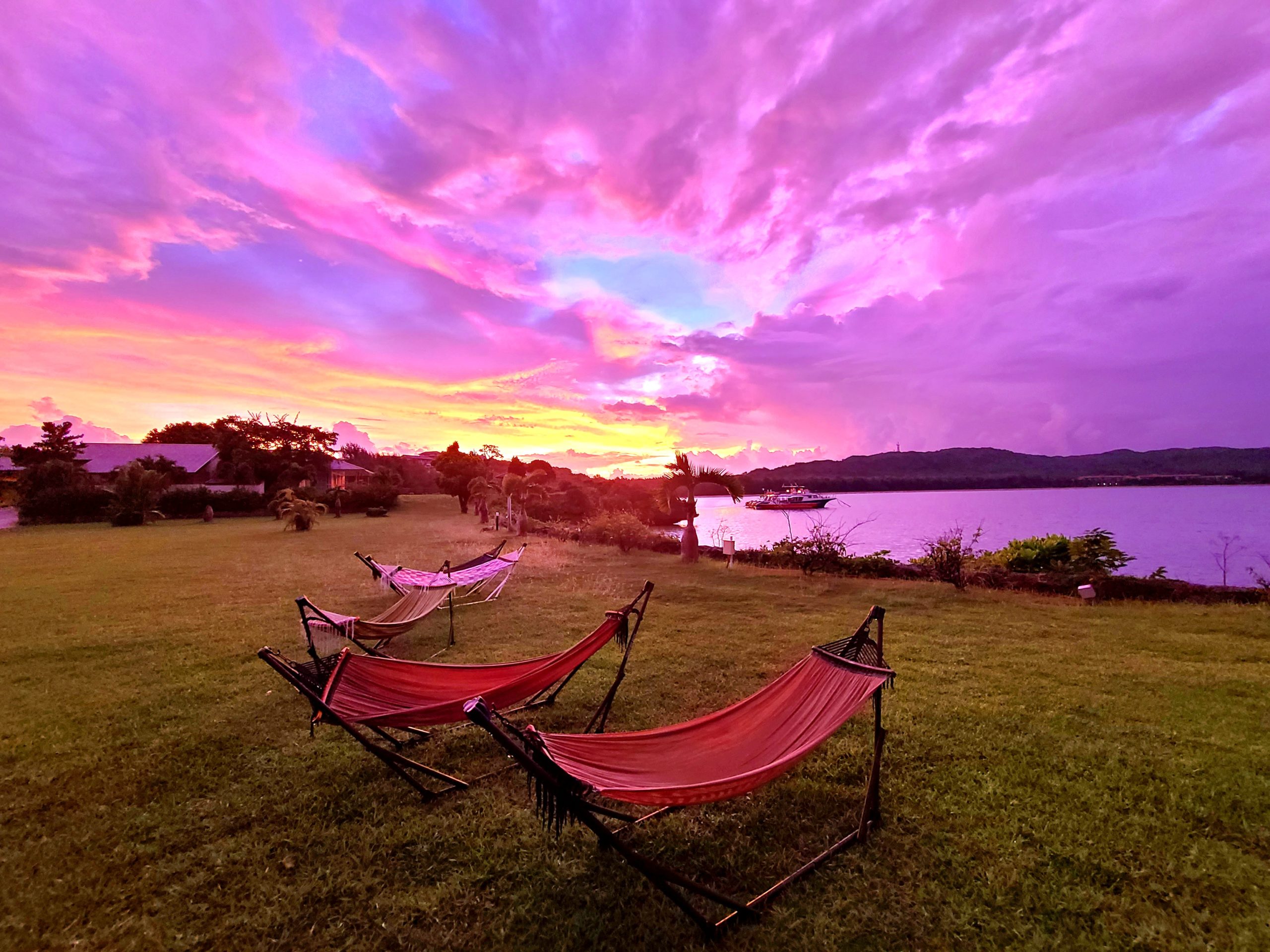 西表島に到着して、いよいよ待ちに待ったダイビングスタートです!朝焼けに染まるプライベートビューからのスタート✨